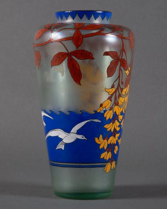Glass: A sampling of our inventory Carl-Georg Von Riechenbach for Poschinger Austrian Bronze Mounted Cut Glass Bottle Vase Fritz Heckert Changeant Art Glass Vase Selection of Gabriel Argy-Rousseau Pate de Verre Glass Pendant Necklaces Oiva Toikka One-off Vase for Nuutajarvi Notsjo Max Rade for Fritz Heckert Art Glass Vase Austrian Art Nouveau Glass likely by Kralik